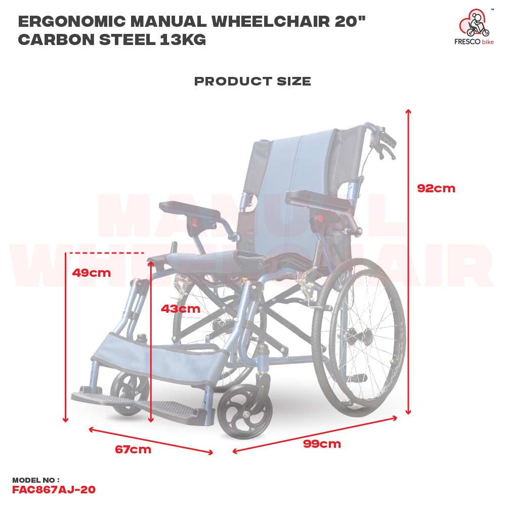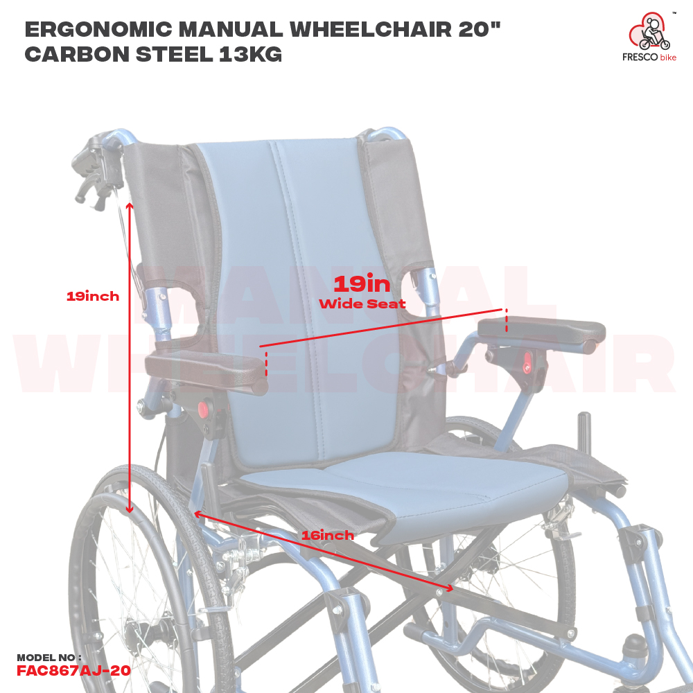 Lightweight Wheelchair Manual Ergonomic Carbon Steel 20” Foldable FAC867AI-20